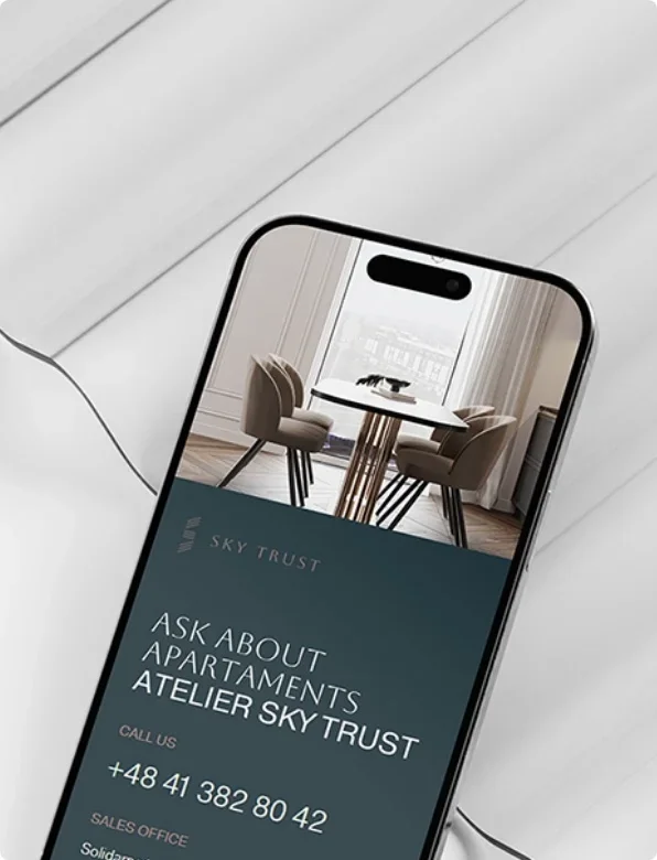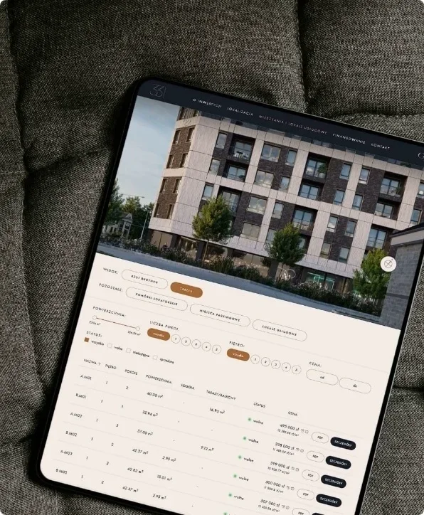 Projektujemy i wdrażamy wszystkie niezbędne narzędzia - strony inwestycji, landing pages, kampanie reklamowe oraz integracje z CRM, a wszystko tak, aby marketing od pierwszego dnia realnie wspierał proces sprzedaży.