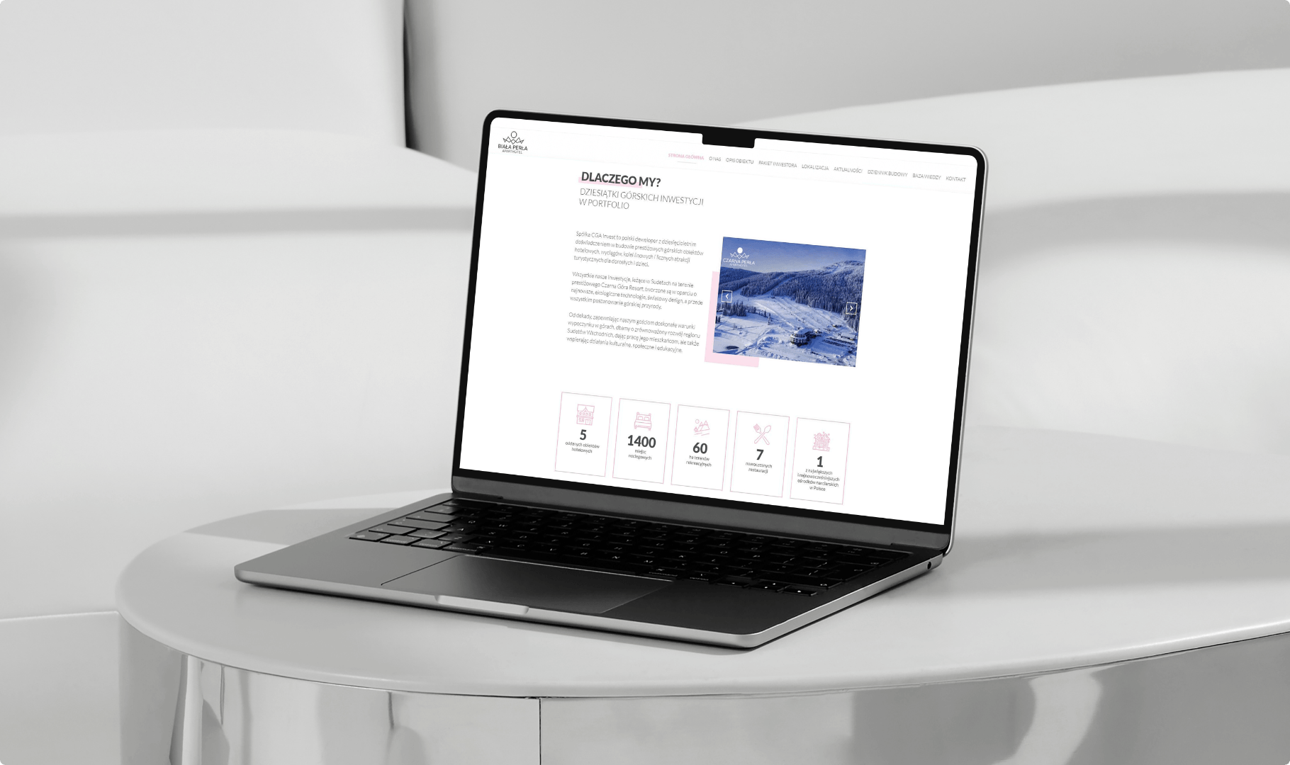 Projekt dla Biała Perła był czymś więcej niż stworzeniem strony internetowej – jego celem było zbudowanie kompletnego, emocjonalnego doświadczenia wokół wyjątkowej inwestycji w górskim krajobrazie. Naszym zadaniem było przełożenie atmosfery miejsca, jego ekskluzywnego charakteru oraz potencjału inwestycyjnego na spójną narrację cyfrową.
