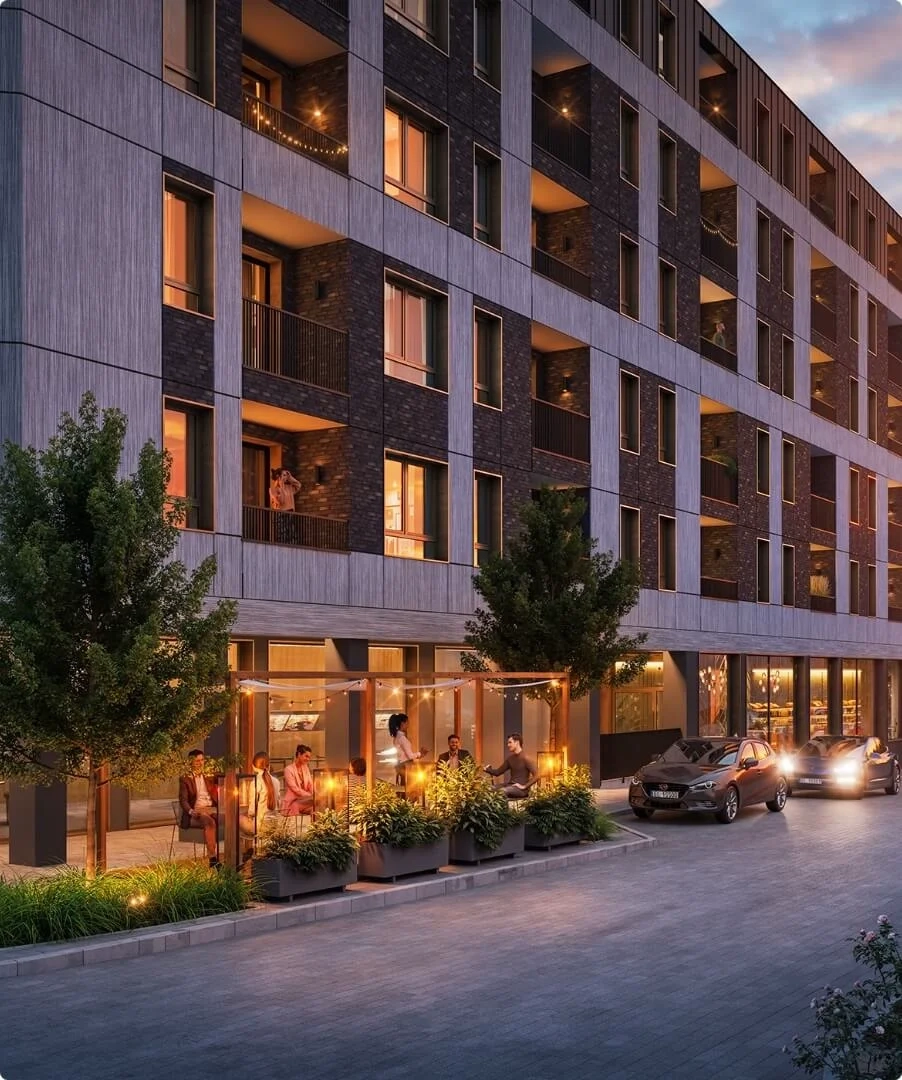 - Prezentacja wizualnaStarannie dobrany zestaw wizualizacji i materiałów architektonicznych, które oddają charakter inwestycji oraz jej wpisanie w tkankę miejską.