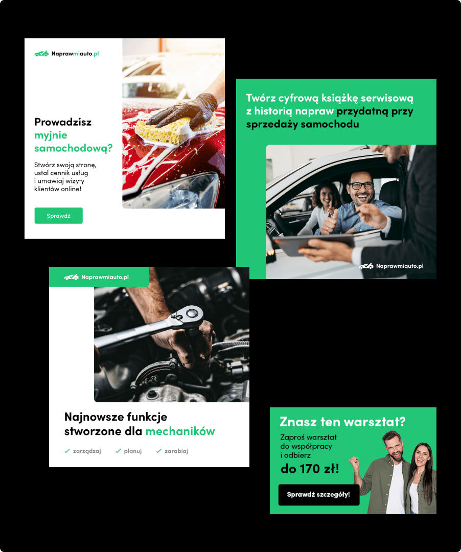 Po przygotowaniu platformy do skalowania uruchomiliśmy działania marketingowe dopasowane do każdej z grup użytkowników. Kampanie wspierały pozyskiwanie warsztatów poprzez lead generation oraz budowały świadomość wśród kierowców za pomocą działań digitalowych.