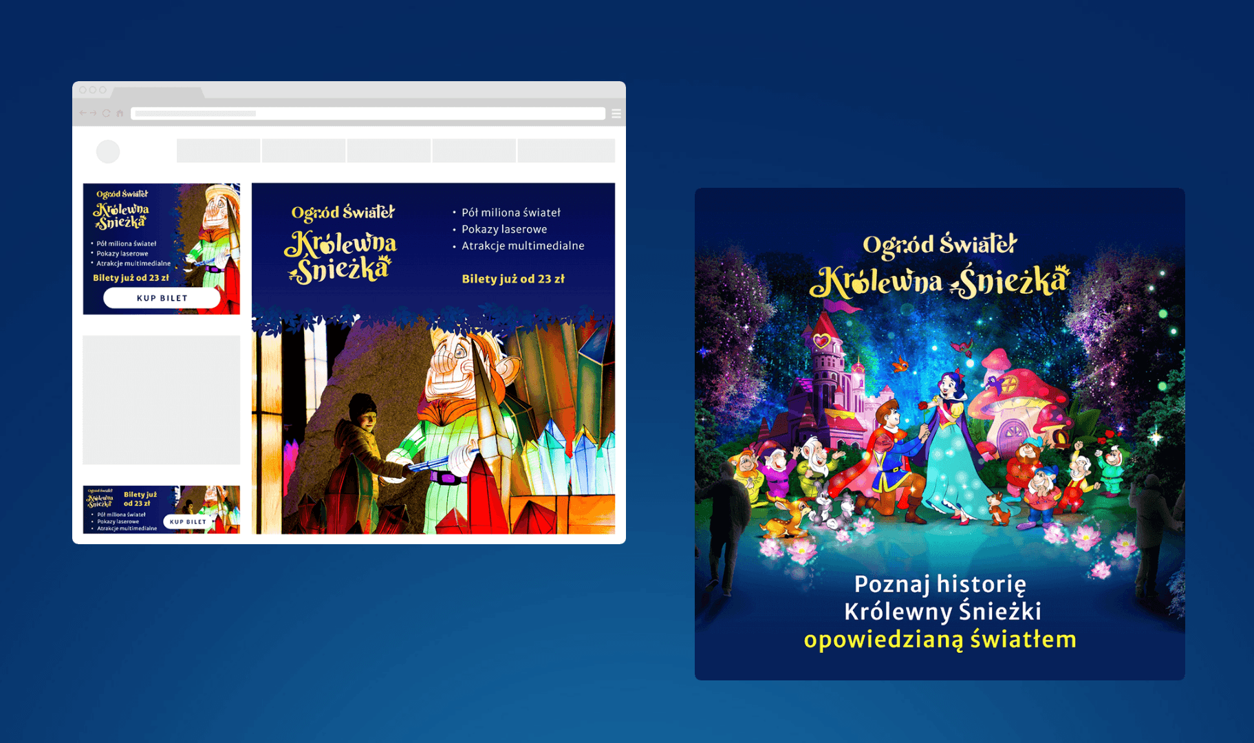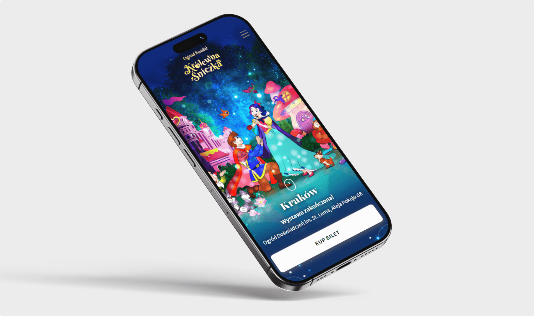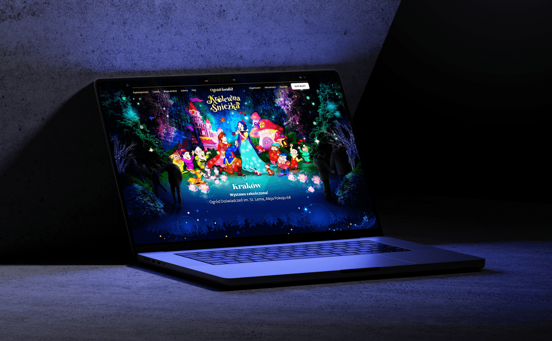 Wystawa „Ogród Świateł: Królewna Śnieżka” przekształciła Ogród Doświadczeń im. Stanisława Lema w Krakowie w fascynującą podróż przez ukochaną bajkę. Zespół ADream otrzymał zadanie opracowania spójnej identyfikacji wizualnej, interaktywnej platformy cyfrowej oraz atrakcyjnej strategii marketingowej, które miały przyciągnąć was i zanurzyć was w tym magicznym świecie.