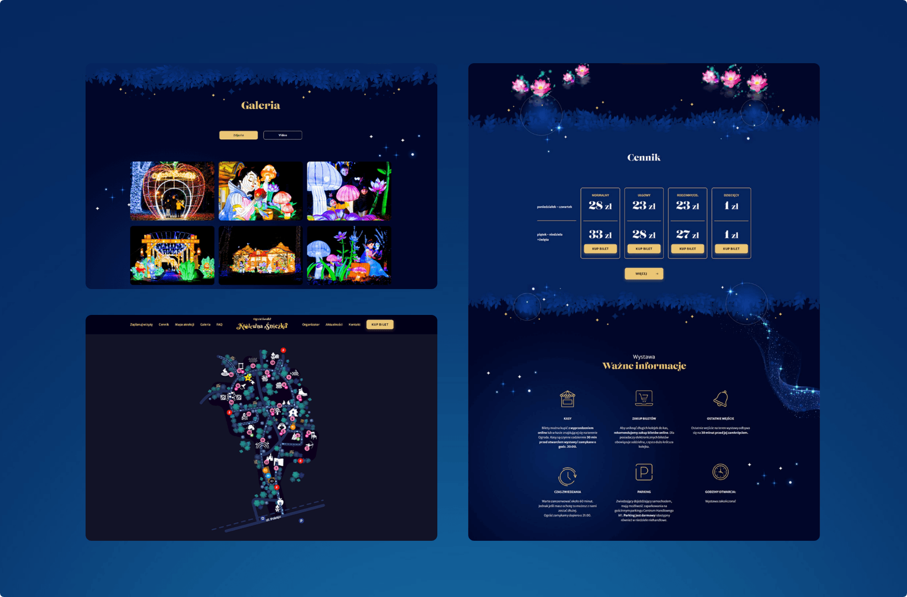 Strona internetowa wystawy stanowiła główny punkt kontaktu dla potencjalnych zwiedzających, oferując niezbędne informacje i ułatwiając sprzedaż biletów. Naszym celem było stworzenie doświadczenia online, które odzwierciedlałoby urok fizycznej wystawy.