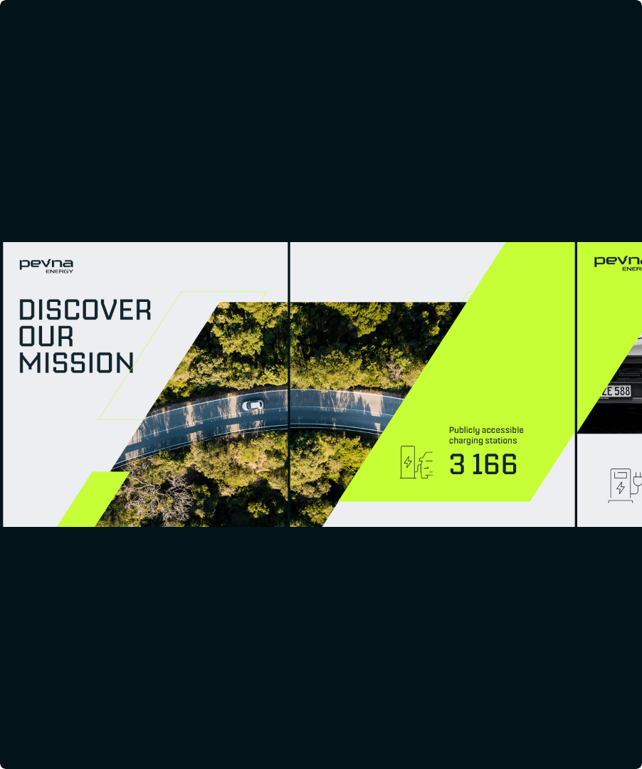 - Mapowanie odbiorcówNasza strategia uwzględniała zróżnicowanych odbiorców Pevna: inwestorów, gminy, właścicieli gruntów, kierowców pojazdów elektrycznych, tworząc markę, która może być skalowana w różnych przypadkach użycia, zachowując jednocześnie jednolity ton.