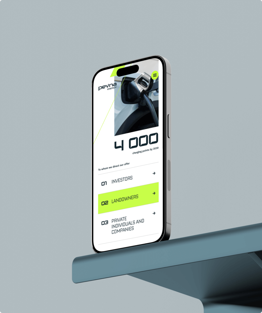 Misją Pevna Energy jest przyspieszenie przejścia Polski na mobilność elektryczną poprzez budowę 4000 punktów ładowania pojazdów elektrycznych do 2030 roku. Naszym celem było stworzenie platformy cyfrowej, która nie tylko komunikuje tę ambitną wizję, ale także angażuje różne zainteresowane strony: inwestorów, właścicieli gruntów, przedsiębiorstwa i użytkowników pojazdów elektrycznych w spójny i przekonujący sposób.