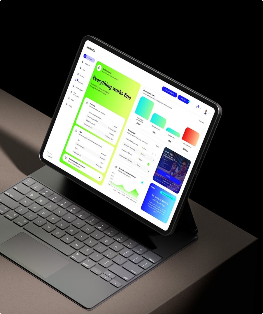 Twoja strona internetowa jest cyfrową wizytówką twojej firmy, a webinity zapewnia jej bezbłędne działanie. Od aktualizacji technicznych i monitorowania dostępności po audyty UX i wsparcie ekspertów - webinity zapewnia spokój ducha, dzięki czemu możesz skupić się na swojej działalności.